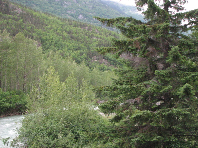 Skagway, we did the White Mountain Pass Railway and saw the gold miners path