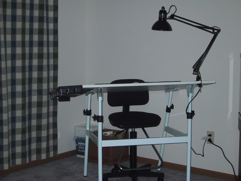 Jen's drawing table (note: curtain in background not actual